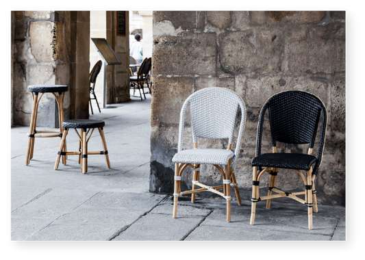 The frame of the Bistro bench is handcrafted in rattan, and the seat is woven with ArtFibre. This combination makes the bench highly comfortable and very durable.