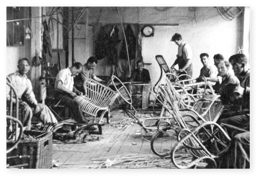 This furniture is designed by Robert W. (1825-1902) who was known as the best wicker maker in Denmark. Many architects came to his workshop to get knowhow and understanding of weaving and wicker work. Among these were Danish architects Arne Jacobsen, Viggo Boesen, Nanna & Jørgen Ditzel and Kay Bojesen who all had many of their prototypes made in Robert W's workshop in Copenhagen. Read more about Robert W. here.